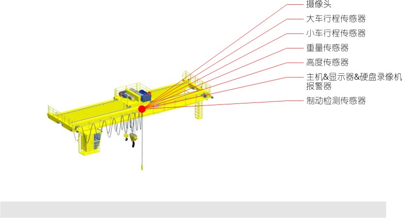 1.起重機(jī)運(yùn)行狀態(tài)監(jiān)測(cè)、顯示及記錄,包括有起重機(jī)的起升高度(下降深度)、天車橫向行程、重量、整機(jī)縱向行程數(shù)據(jù),對(duì)起重機(jī)運(yùn)行過程中的數(shù)據(jù)可以記錄在本地監(jiān)控儀(大于30天)中,滿足起重機(jī)安全事故分析及起重機(jī)運(yùn)行效率分析的要求;